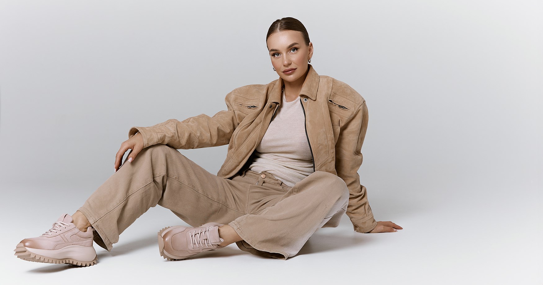 Женские кроссовки бежевого цвета