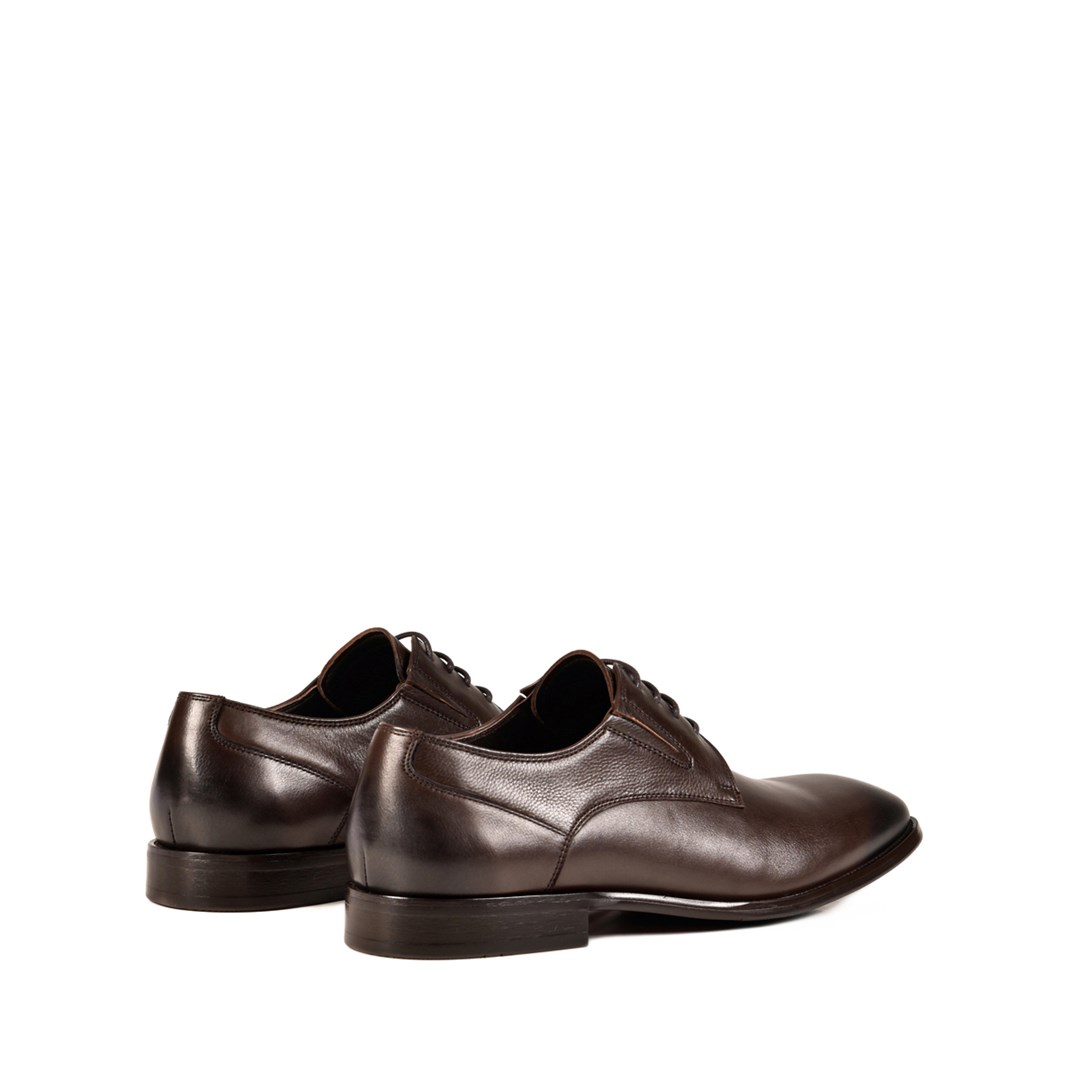 <p>Мужские дерби&nbsp;в тёплом коричневом оттенке &mdash; строгая базовая пара для делового гардероба. Вытянутый миндалевидный носок и чистый верх&nbsp;создают аккуратный силуэт, а лёгкий глянец кожи подчёркивает глубину цвета и хорошо смотрится с костюмами разной степени формальности. Удобная колодка и невысокий каблук обеспечивают комфорт при длительной носке, шнуровка позволяет точно отрегулировать посадку по подъёму. Дерби органично сочетаются с классическими костюмами, брюками‑чинос и тёмным денимом, подойдут&nbsp;для офиса&nbsp;и&nbsp; деловых мероприятий.</p>