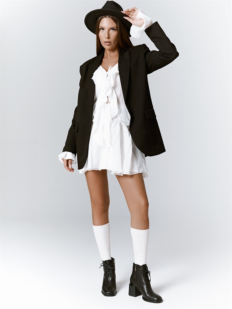 <p>Ботильоны, в которых концепция утонченной классики обретает современное звучание. Широкий каблук трапециевидной формы выступает архитектурным акцентом модели, гарантируя&nbsp;устойчивость и исключительный комфорт. Лаконичный силуэт с изящно прилегающим голенищем подчеркивает стройность ноги, а мягкая квадратная носочная часть добавляет образу актуальные графичные ноты. Модель выполнена из натуральной кожи с выразительной зернистой фактурой, которая раскрывает глубину черного цвета. Мягкая текстильная подкладка обеспечивает комфорт на протяжении всего дня.</p> <p>&nbsp;</p>