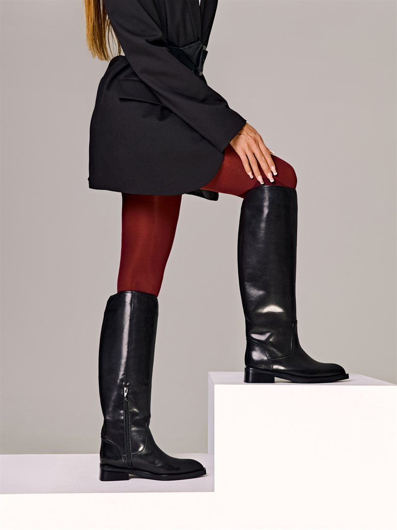 Чем проще, тем лучше — это про сапоги-трубы из новой коллекции Chewhite Premium. Натуральная кожа базового черного цвета отвечает за универсальность, а вневременной лаконичный дизайн без фурнитуры не даст изделию выйти из моды. Эта модель легко вписывается как в ансамбли с юбками и платьями, так и в более повседневные сочетания с брюками или джинсами, заправленными внутрь.