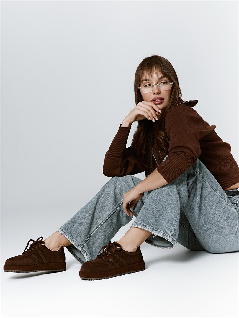 Кеды в стиле casual — идеальный выбор для динамичных осенних дней. Модель выполнена из мягкой замши в тёплом коричневом оттенке и дополнена уютной подкладкой из текстиля, которая сохраняет тепло. Лаконичный дизайн с акцентными деталями легко впишется в повседневные образы, добавляя им уюта и индивидуальности.