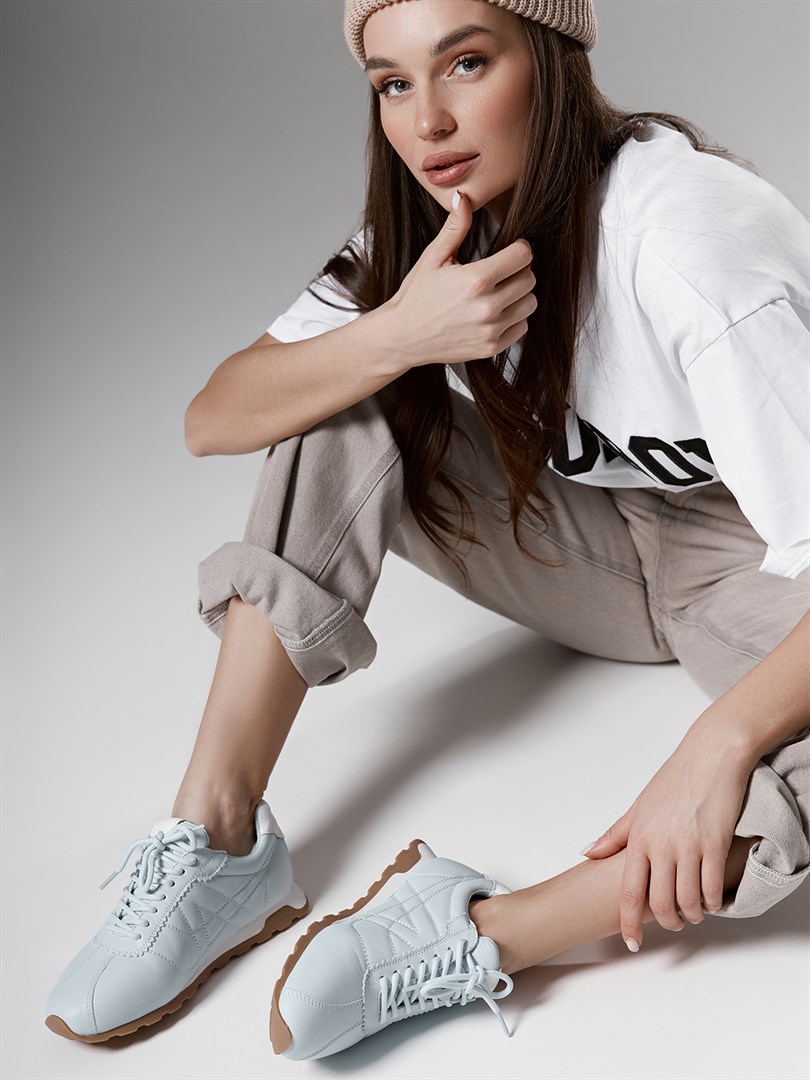 <p>Кроссовки из коллекции Chewhite созданы для легких повседневных образов и активного городского ритма. Модель выполнена из мягкой натуральной кожи небесно‑голубого оттенка с аккуратными декоративными строчками, которые подчеркивают спортивный силуэт. Контрастный белый задник добавляет свежести, а классическая шнуровка позволяет отрегулировать посадку по подъему. Легкая подошва с рельефным протектором обеспечивает амортизацию и уверенное сцепление с поверхностью, оставаясь комфортной в течение всего дня. Нежный голубой цвет становится акцентом в образе и легко сочетается с джинсами, джоггерами и кэжуал‑платьями.</p>