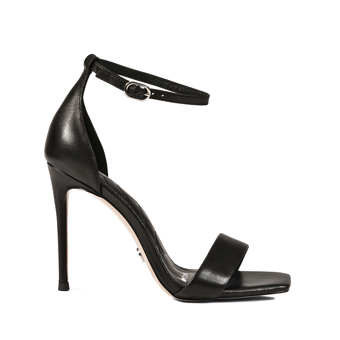 <p>Лаконичные чёрные босоножки из гладкой кожи с открытым квадратным мысом создают чистый, графичный силуэт. Высокая шпилька визуально вытягивает линию ноги, а аккуратный дизайн без лишнего декора делает пару универсальной основой для вечерних комплектов. Мягкий широкий ремень&nbsp;комфортно фиксирует стопу, а регулируемый ремешок на щиколотке позволяет настроить посадку под себя. Босоножки эффектно смотрятся с платьями мини и миди, струящимися брюками и костюмами, подойдут для летних мероприятий, свиданий и вечерних прогулок по городу.</p>