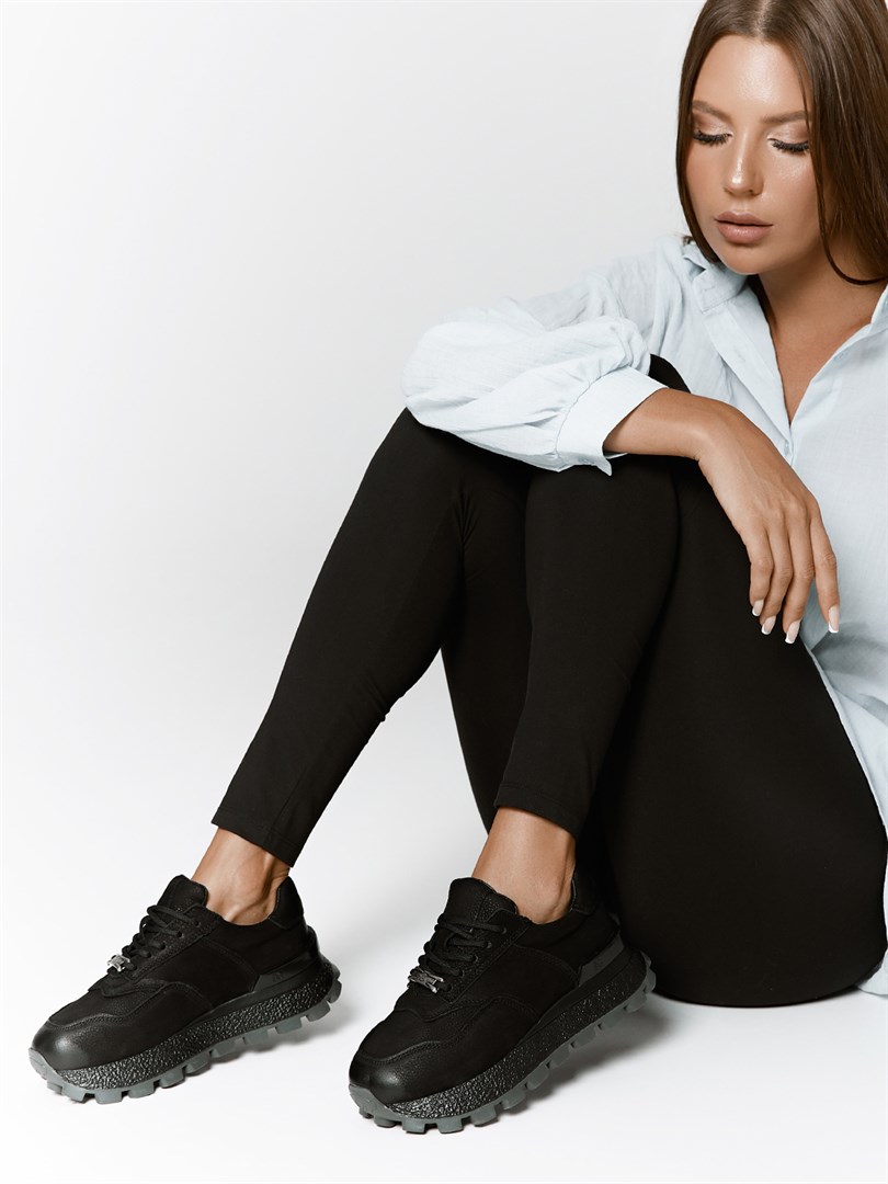 Кроссовки Chewhite, выполненные из натурального нубука, станут стильным акцентом в повседневном гардеробе. Модель отличается лаконичным дизайном и актуальной объемной подошвой с выразительным рельефом, которая обеспечивает комфорт и отличную амортизацию при ходьбе. Глубокий черный оттенок делает пару универсальной и легко сочетаемой с разными образами. Кроссовки идеально подойдут для динамичного городского ритма и прогулок в стиле casual.