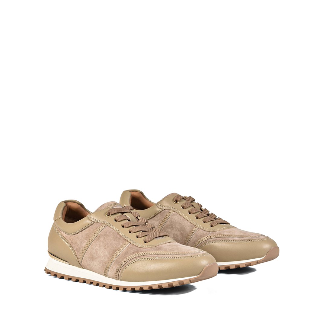 <p>Бежевые кроссовки в мягкой песочной гамме &mdash;&nbsp;база для городского гардероба. Сочетание гладкой&nbsp;кожи и&nbsp;бархатистой замши&nbsp;создает глубокую визуальную фактуру, превращая спортивную обувь в&nbsp;акцент. Мягкий задник и комфортная колодка обеспечивают деликатную фиксацию стопы, классическая шнуровка позволяет точно настроить объём по подъёму. Резиновая подошва с рельефным протектором обеспечивает мягкую амортизацию и&nbsp;надежное сцепление с&nbsp;поверхностью. Кроссовки&nbsp;органично сочетаются с прямыми и укороченными джинсами, брюками чинос и лаконичными платьями, подойдут для повседневных дел, прогулок и путешествий.</p>