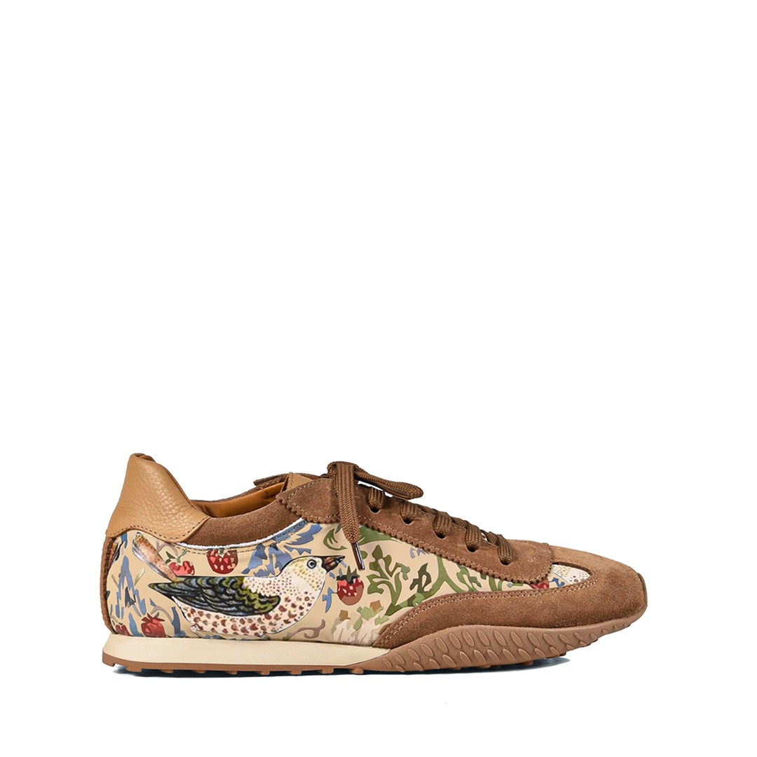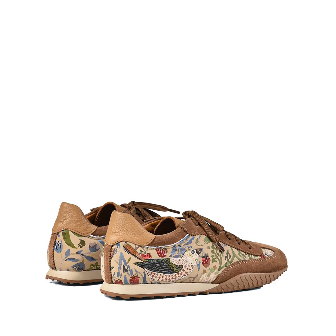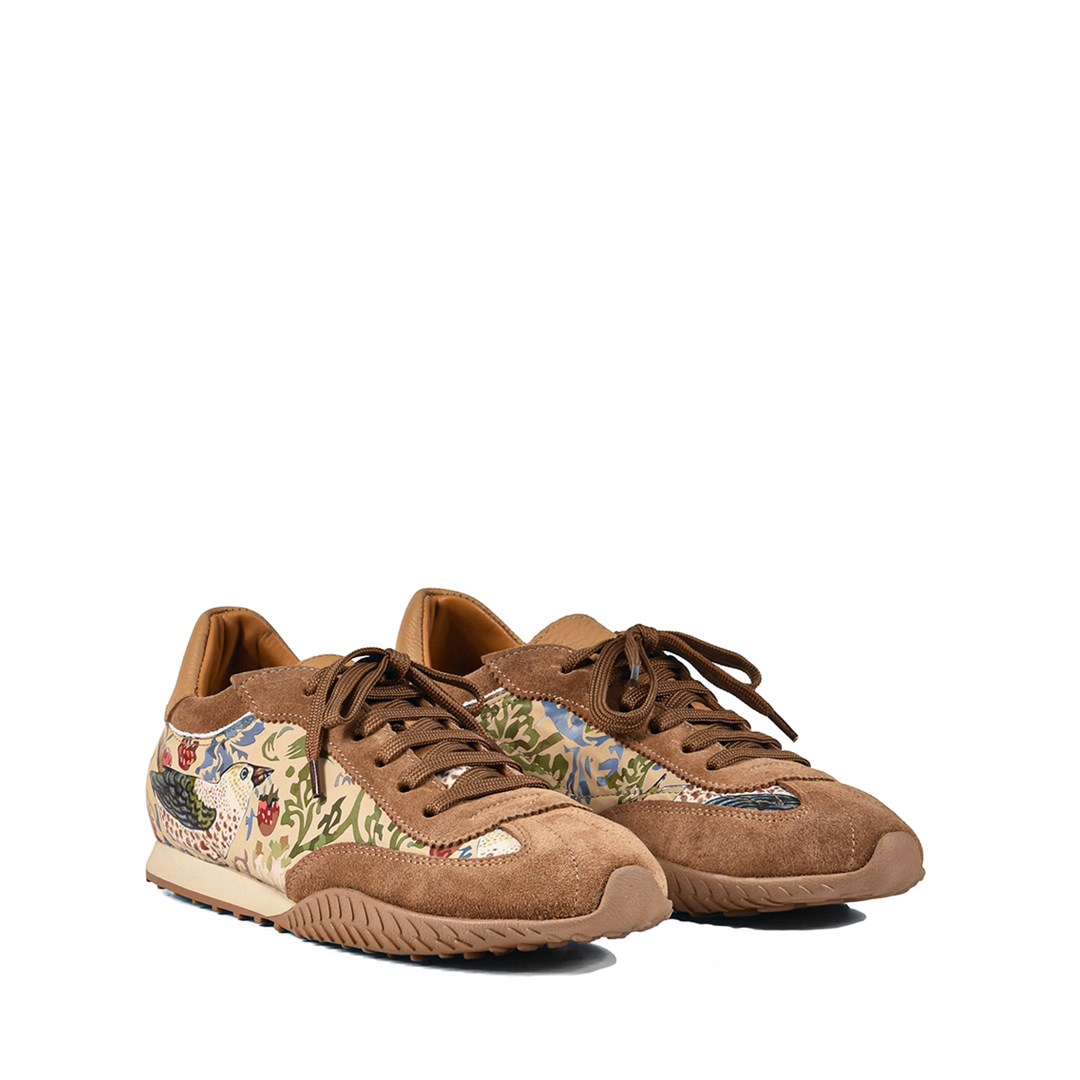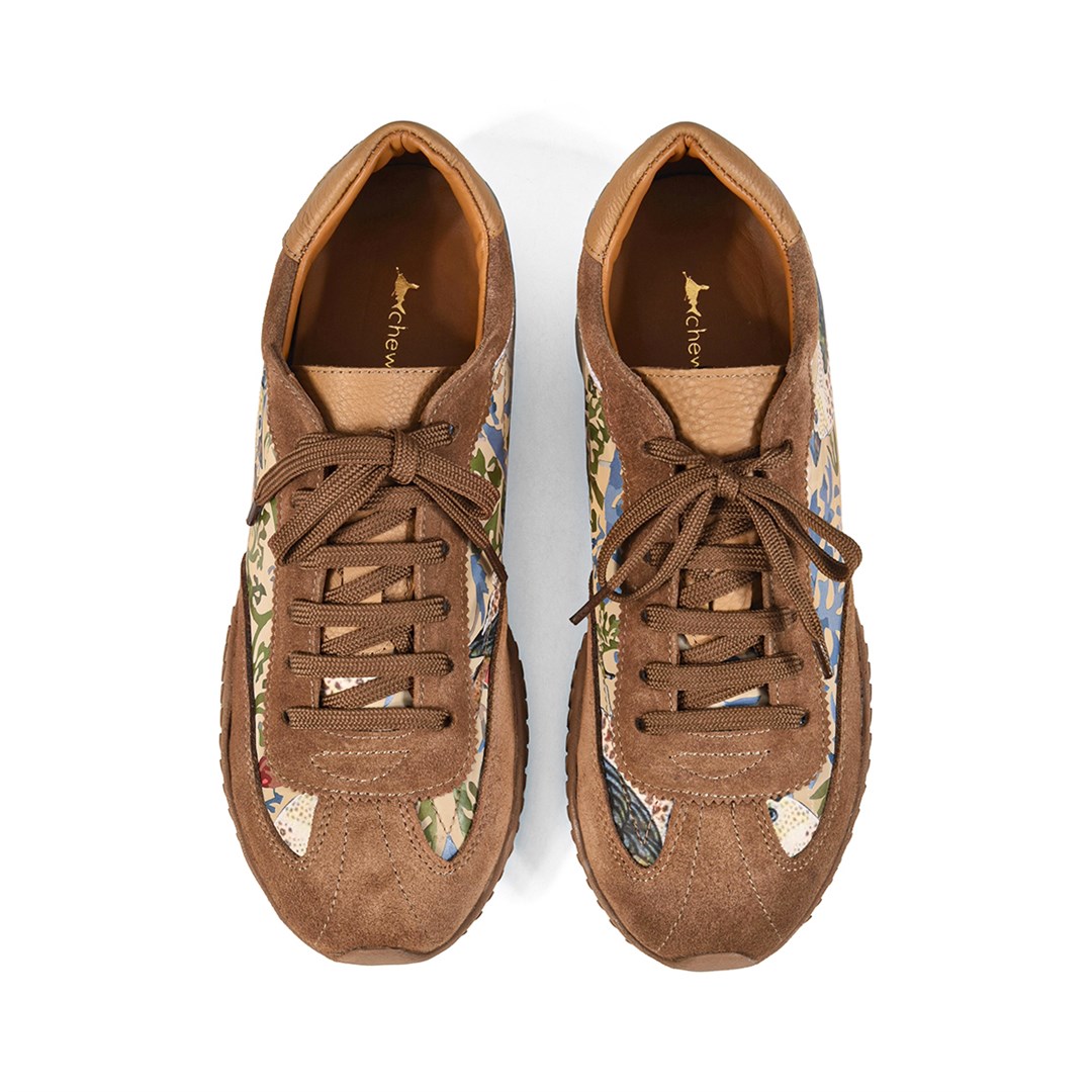 <p>Тёплая карамельная гамма и декоративный принт превращают эти кроссовки в яркий акцент повседневного образа. Силуэт в духе ретро‑раннеров дополнен замшевыми вставками и гладкой кожей, создающими богатую фактуру и поддерживающими форму пары. Верх выполнен из комбинации натуральной кожи и мягкой замши, что обеспечивает баланс между структурой и комфортом. Подкладка и стелька из кожи поддерживают комфортный микроклимат, классическая шнуровка позволяет точно настроить посадку по подъёму. Лёгкая рельефная подошва смягчает шаг и обеспечивает надёжное сцепление с городской поверхностью. Такие кроссовки органично сочетаются с джинсами, льняными и хлопковыми брюками, шортами и лаконичными платьями, добавляя в базовый гардероб дозированный цвет и характер.</p>