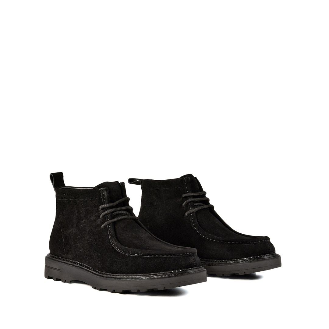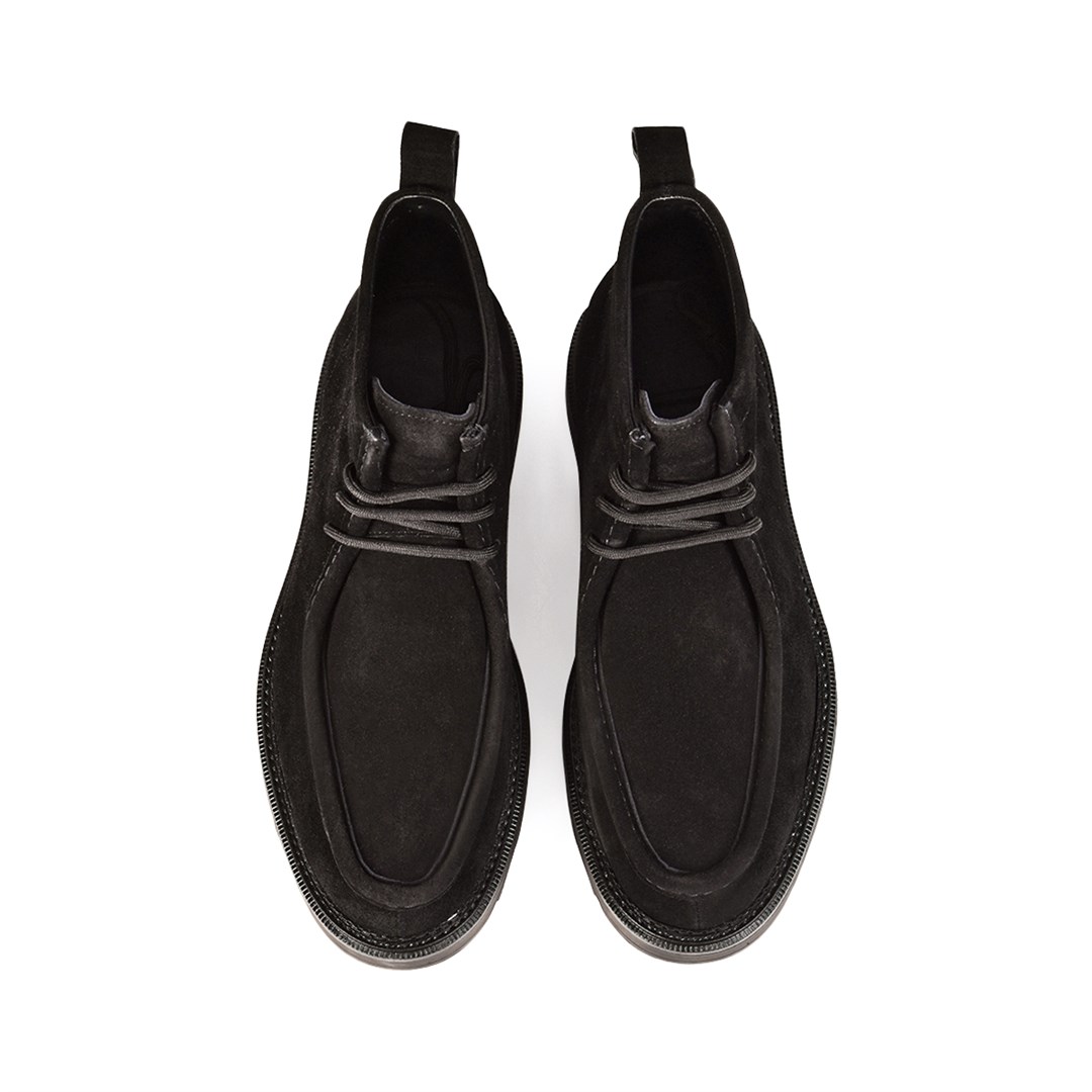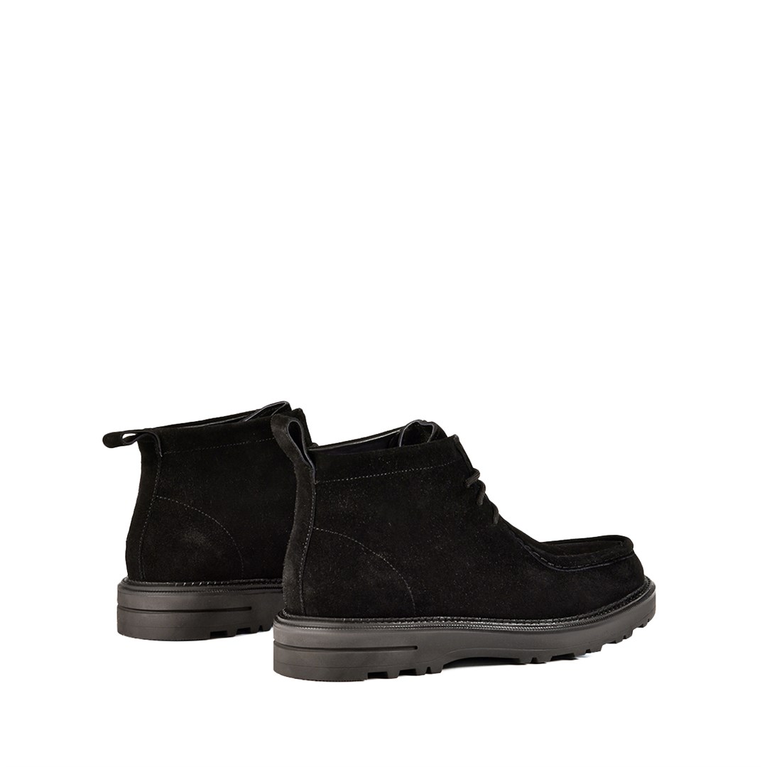 Демисезонные ботинки в лаконичном исполнении — универсальный выбор для городского гардероба. Модель выполнена из натуральной замши в базовом черном цвете. Акцентный шов и округлая носочная часть придают паре современное звучание, а рельефная подошва обеспечивает уверенность на разных поверхностях. Лаконичный дизайн легко сочетается с джинсами и брюками в повседневных образах.