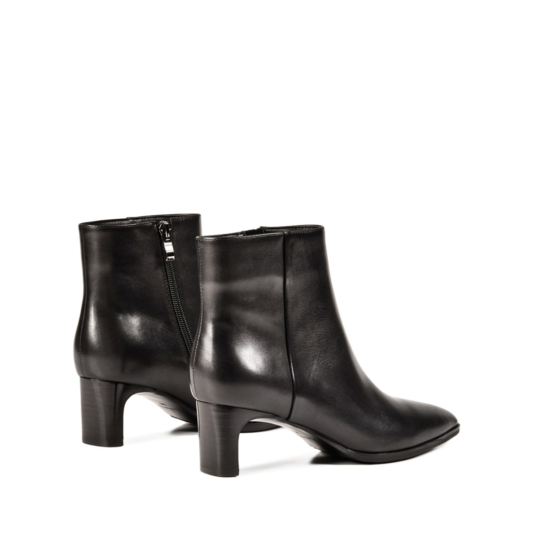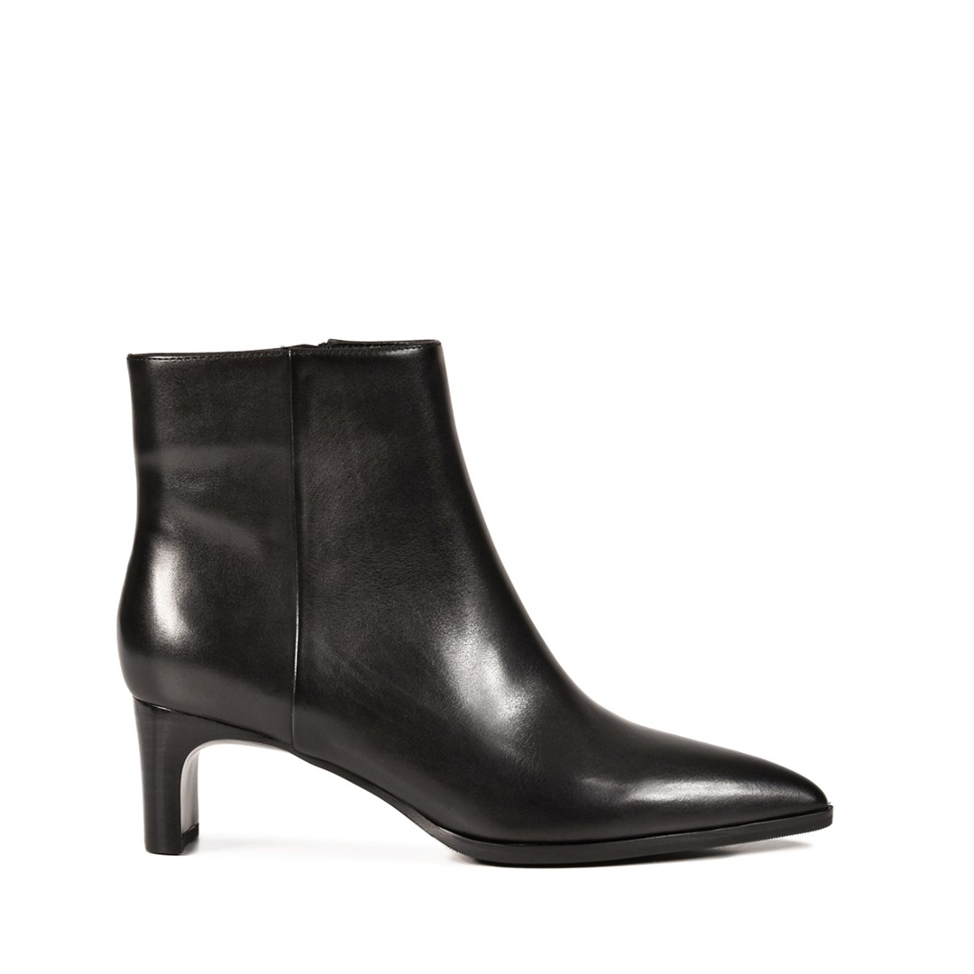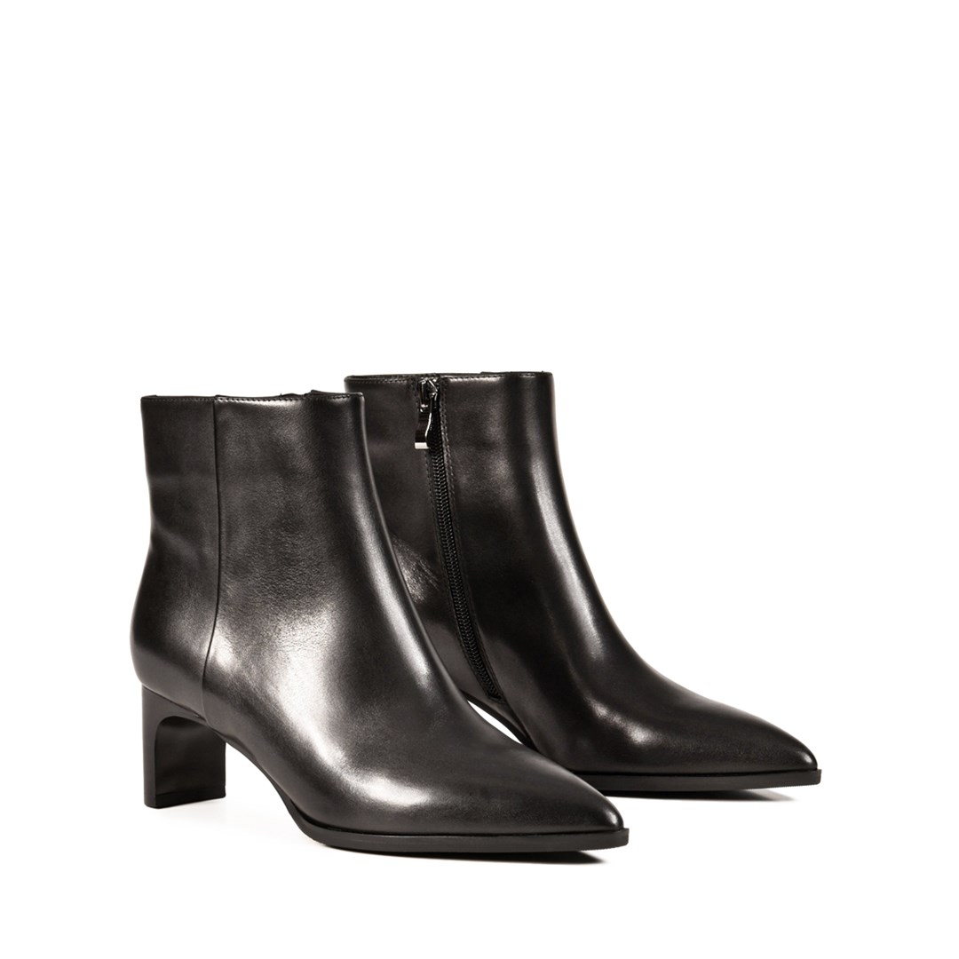 Лаконичные ботильоны из натуральной гладкой кожи — универсальное решение для демисезонного гардероба. Чистые линии, заострённый мыс и аккуратный каблук подчёркивают элегантность силуэта. Модель выполнена в классическом чёрном цвете, что позволяет легко сочетать пару с юбками, платьями и брюками. Удобная молния сбоку обеспечивает комфорт при ежедневной носке, а минималистичный дизайн делает ботильоны актуальными для разных образов — от деловых до повседневных.