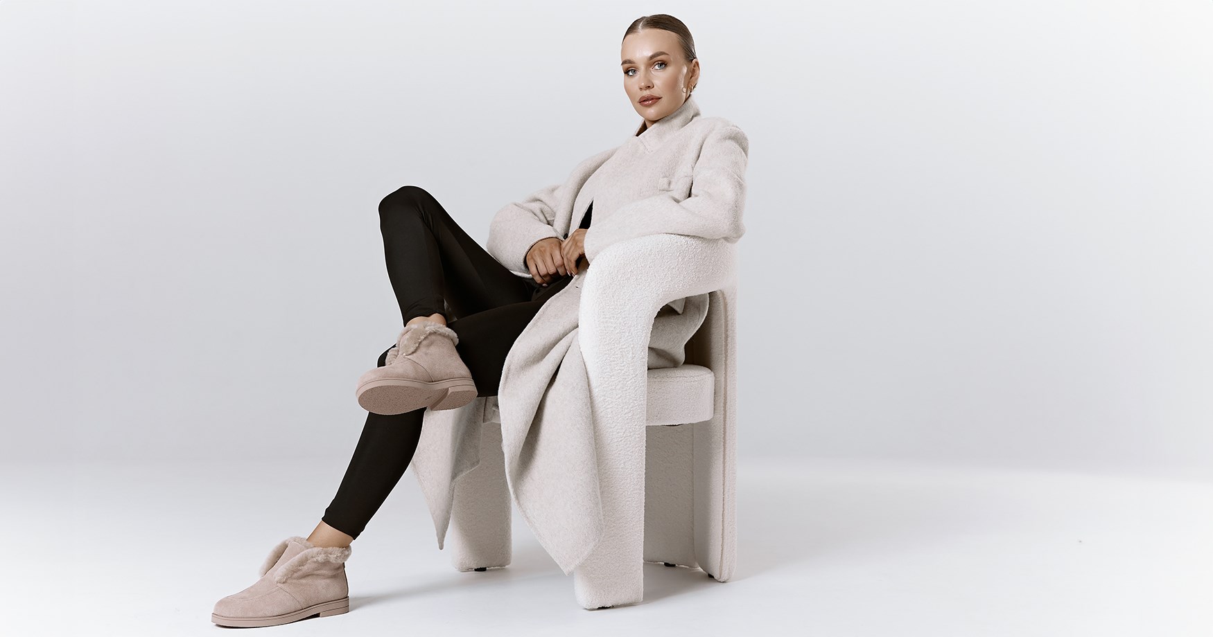 Уют и сдержанный стиль в одной паре: ботинки Chewhite, выполненные из натуральной замши светло-бежевого оттенка, станут трендовым и практичным выбором для зимнего периода. Нейтральный оттенок и чистый минималистичный дизайн делают модель универсальной — она легко впишется в разные повседневные образы. Конструкция поддерживает расслабленный дизайн: округлая носочная часть с акцентной строчкой и натуральный мех, который плавно переходит в наружную часть модели и становится частью ее дизайна.