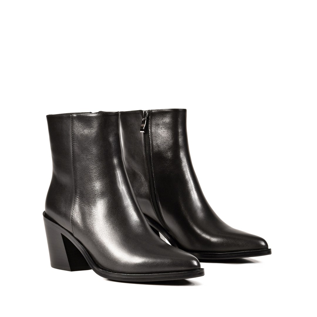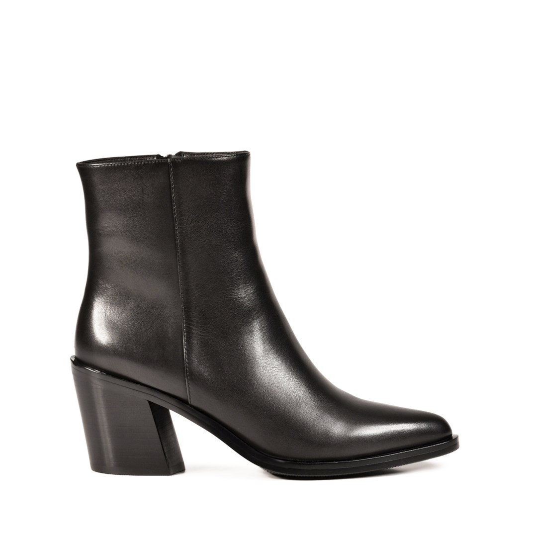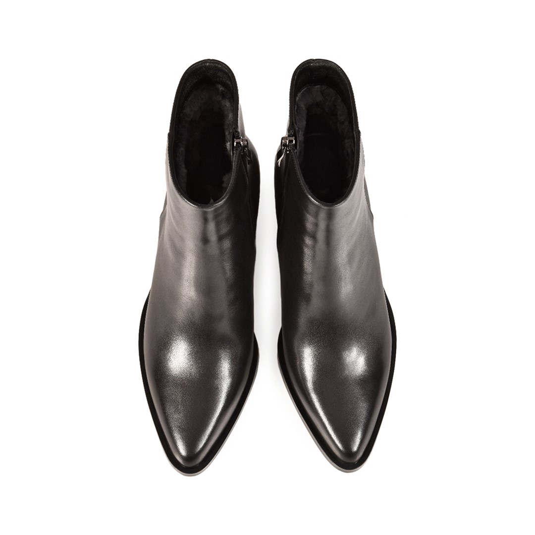 Лаконичные казаки в классическом стиле — универсальное решение для зимнего гардероба. Модель выполнена из натуральной гладкой кожи в насыщенном чёрном оттенке. Заострённый мыс и устойчивый геометричный каблук подчёркивают элегантность силуэта. Внутри — подкладка и стелька из натурального меха, которые обеспечивают надёжную защиту от холода и комфорт. Резиновая подошва с противоскользящим эффектом делает эту пару практичным выбором для повседневных зимних образов.