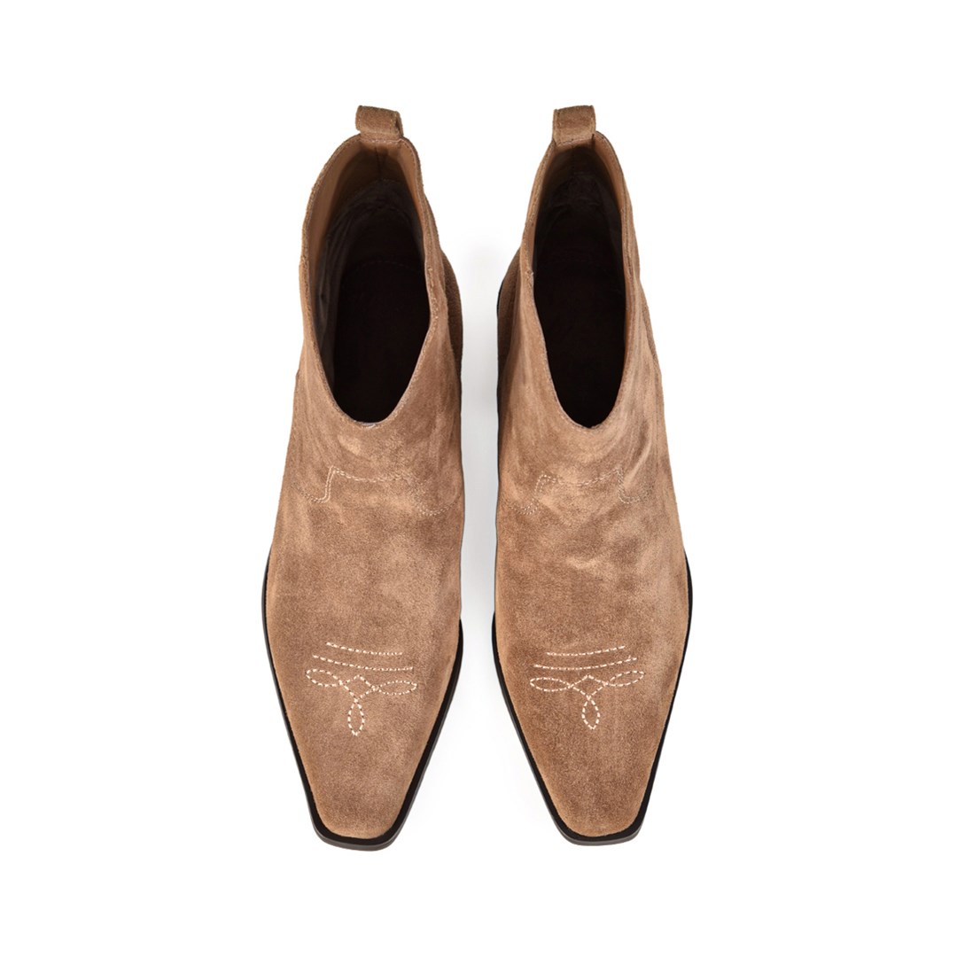 <p>Демисезонные казаки бежевого цвета &mdash; актуальный акцент для стильного гардероба. Модель выполнена из натуральной замши, отличается лаконичным силуэтом и характерным скошенным каблуком. Заострённая носочная часть&nbsp;и декоративная строчка подчеркивают западный характер пары. Бежевый оттенок универсален: такие казаки легко впишутся в образы с джинсами, юбками миди, струящимися платьями и трикотажными костюмами.</p>