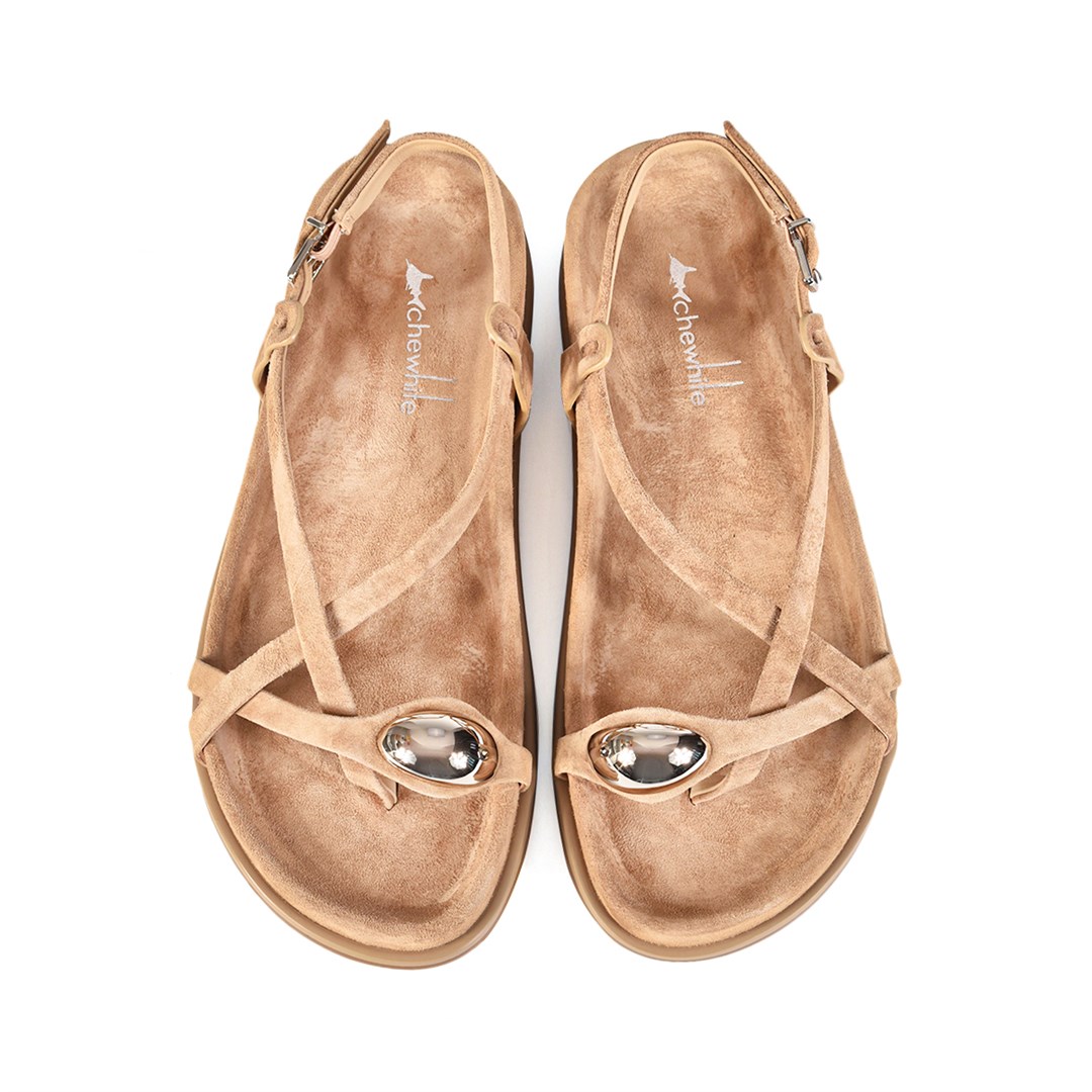 Комфортные сандалии Chewhite Premium выполнены из натуральной бархатистой замши в теплом бежевом оттенке. Пара фиксируется на подъеме тонкими ремешками с петлей для большого пальца и ремешком на щиколотке, который можно регулировать при необходимости. Эргономичная комфортная стелька повторяет форму стопы и позволяет чувствовать себя комфортно в течение всего дня.