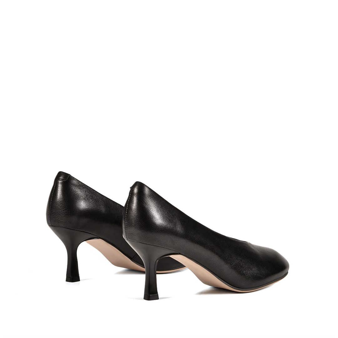 <p>Лаконичные лодочки из гладкой чёрной кожи &mdash; универсальная пара для офиса и особых случаев. Чистый силуэт, мягко скруглённый мыс и аккуратный вырез создают сдержанный, элегантный образ в духе современного минимализма. Устойчивый каблук средней высоты визуально вытягивает линию ноги, оставаясь комфортным для целого дня в движении.&nbsp;Пара органично сочетается с деловыми костюмами, лаконичными платьями и джинсами &mdash; базовые лодочки, к которым всегда можно вернуться.</p>