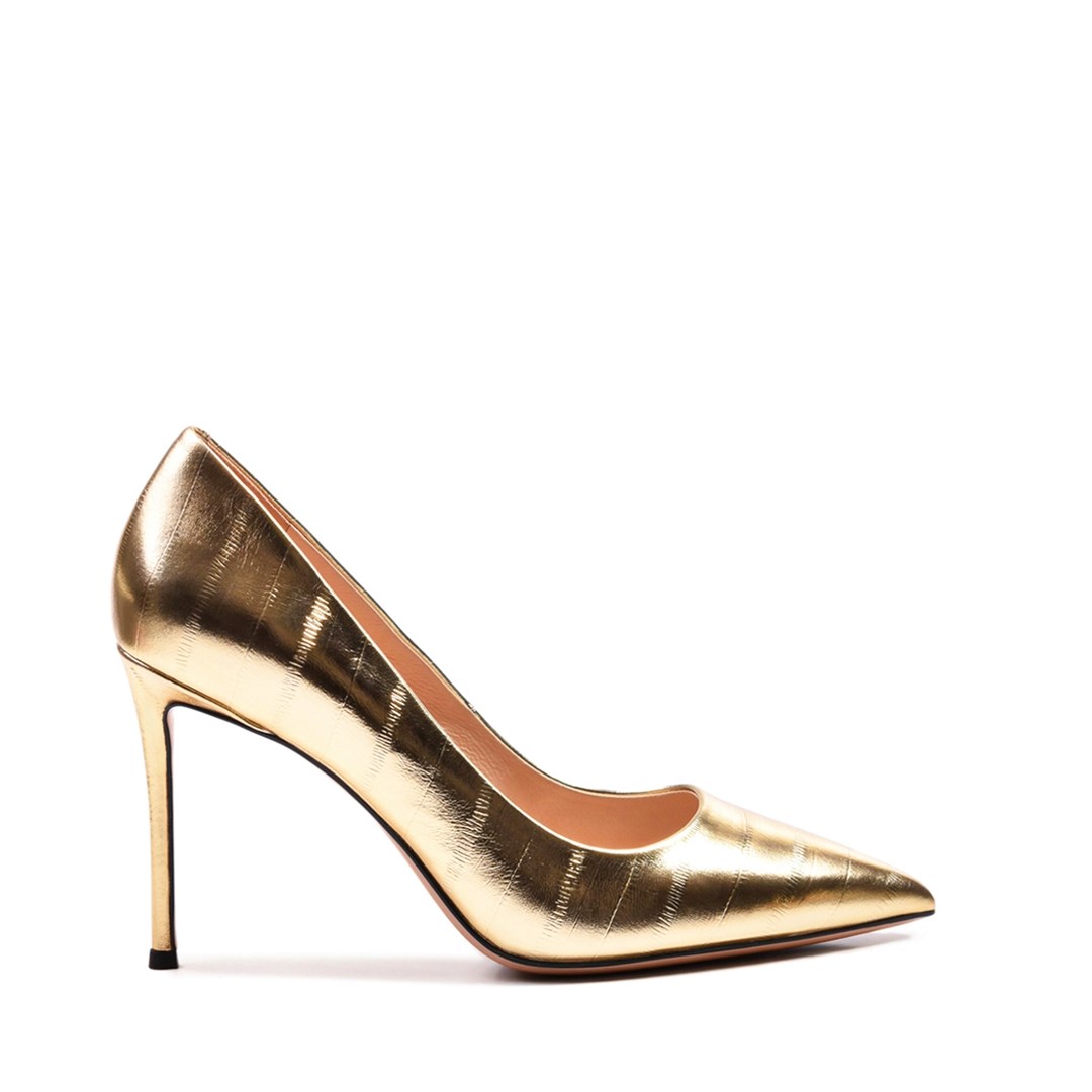 В новой коллекции дизайнеры бренда Chewhite нашли еще один способ, как сиять ярче: включить в свой гардероб золотые туфли на высокой шпильке. Модель выполнили из натуральной кожи и дополнили мягкой кожаной стелькой. На подошве предусмотрена антискользящая резиновая вставка. Такая пара вдохновляет на стильные эффектные образы и подойдет для особенных выходов.