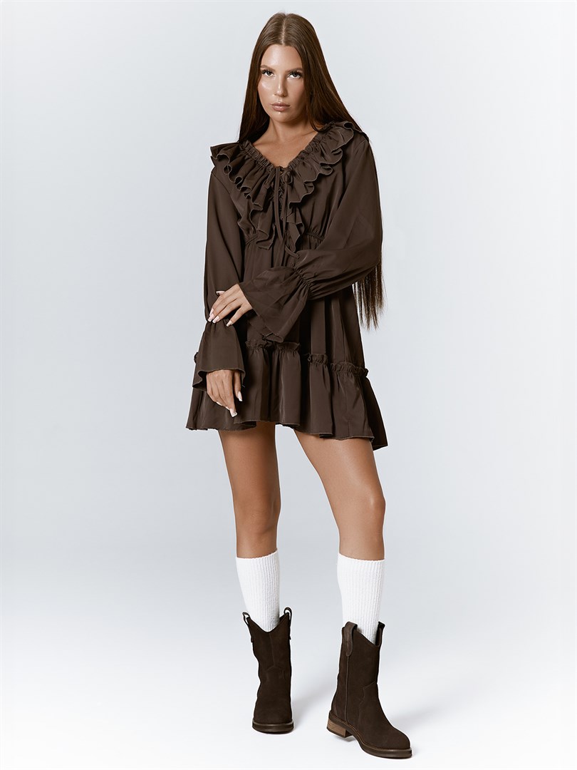 Трендовые ботинки в стиле вестерн выполнены из мягкой натуральной замши в глубокий коричневом оттенке. Лаконичный силуэт с характерными фигурными швами подчеркивает актуальность модели в этом сезоне. Устойчивый каблук средней высоты и мягкая внутренняя отделка из текстиля обеспечивают комфорт в течение всего дня. Ботинки Chewhite гармонично дополнят как повседневные, так и более выразительные образы, оставаясь стильным акцентом вашего гардероба.