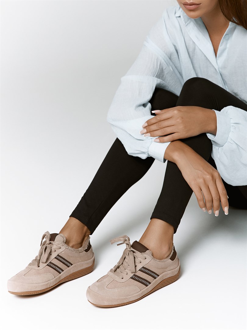 Актуальные кроссовки выполнены из мягкой натуральной замши в светло-бежевом оттенке с контрастными шоколадными вставками. Модель вдохновлена ретро-стилем и дополнена декоративной строчкой, что придаёт образу динамику и современное звучание. Внутренняя отделка из мягкого текстиля обеспечивает тепло и комфорт в прохладную погоду. Легкая подошва гарантирует удобство при ходьбе и отличное сцепление с поверхностью. Кроссовки Chewhite станут стильным акцентом для повседневных и спортивных образов.