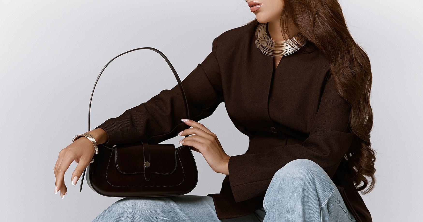 Женская сумка-багет коричневого цвета