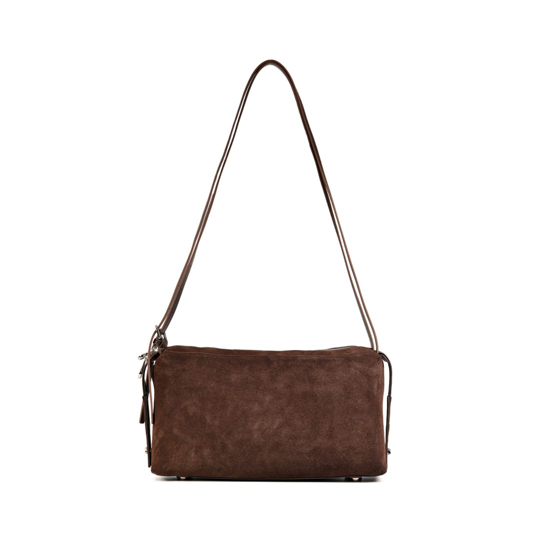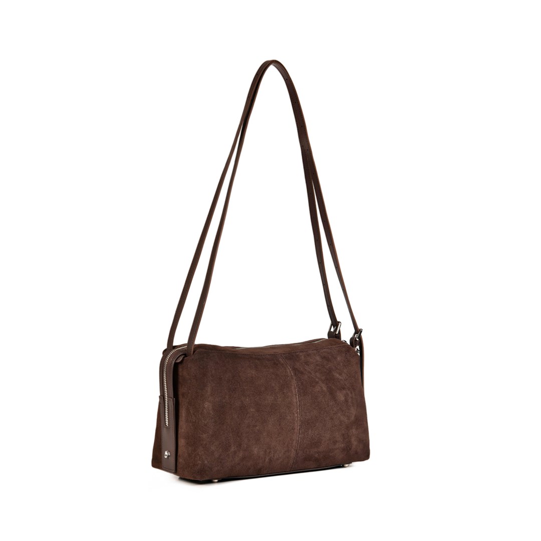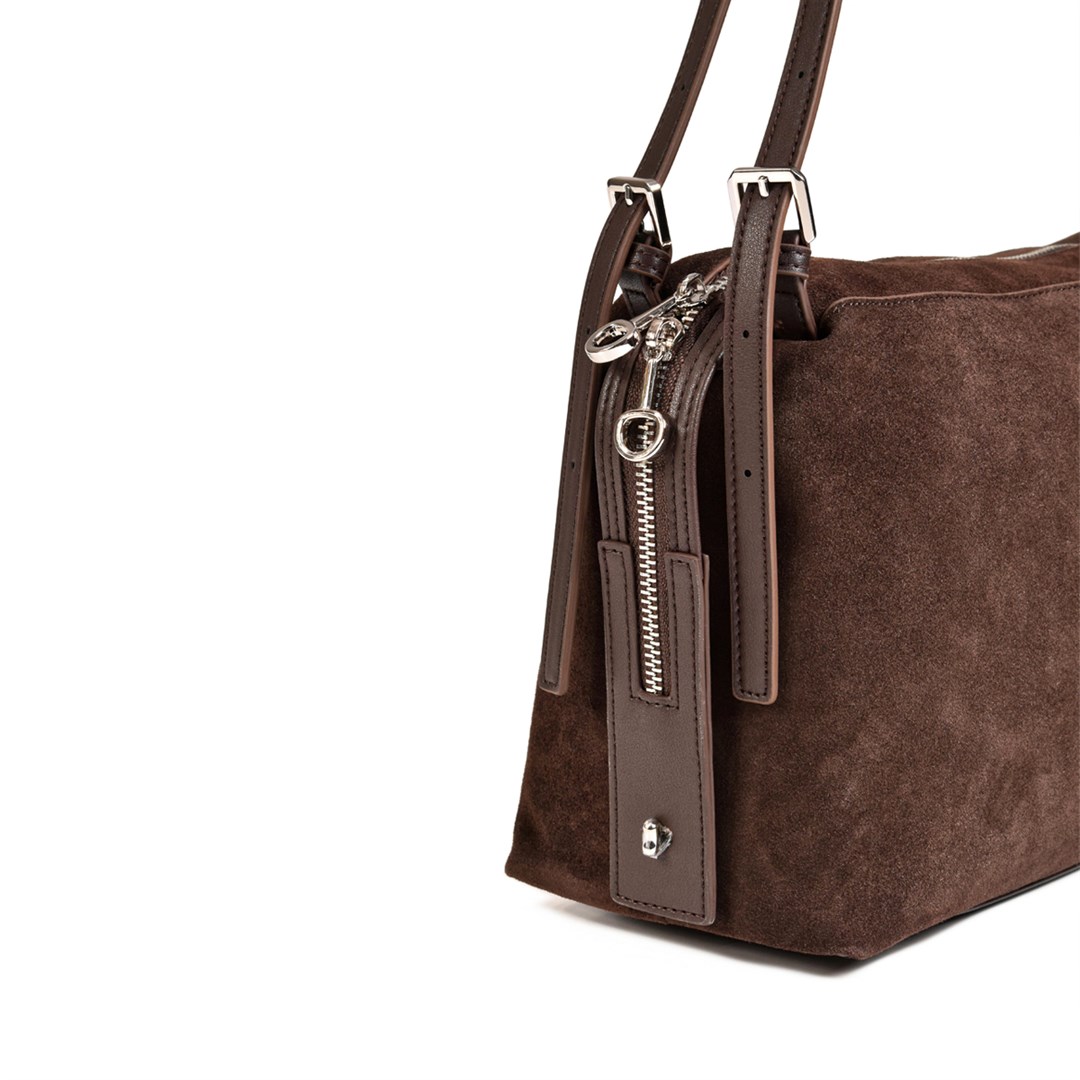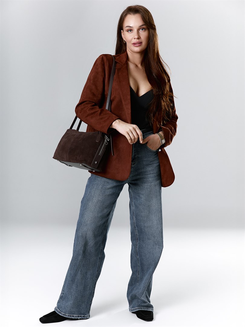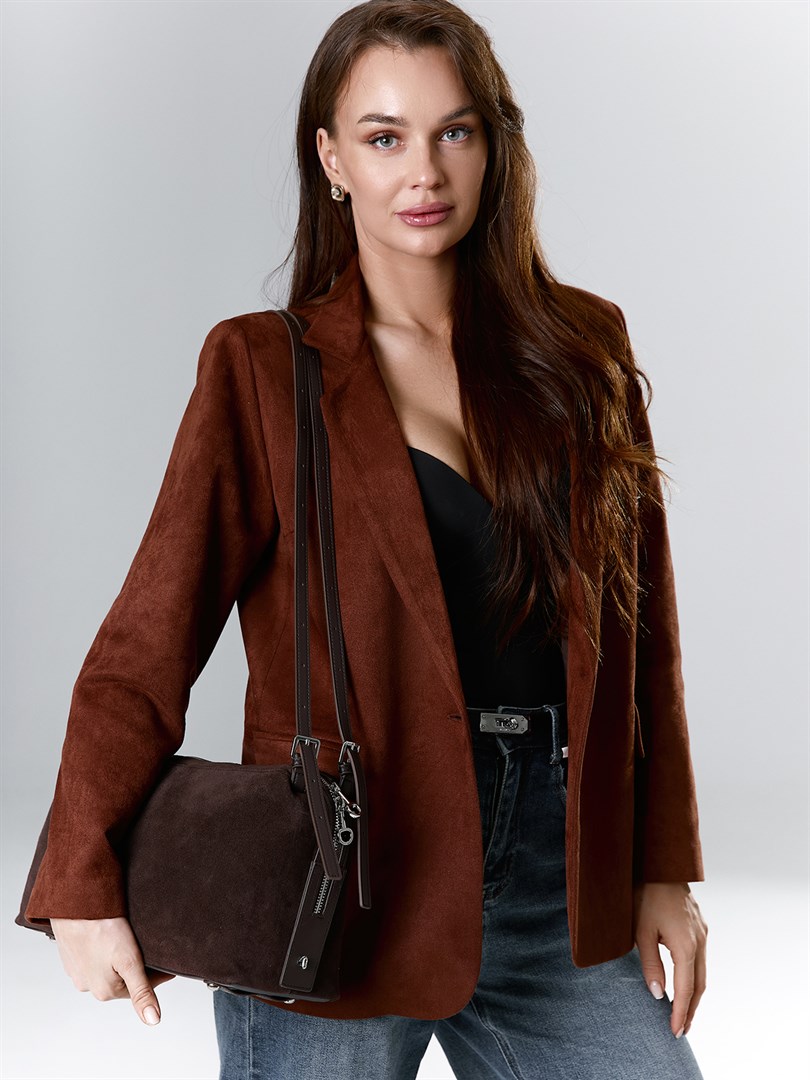 Сумка из натуральной замши в насыщенном шоколадном оттенке — универсальный аксессуар для современного гардероба. Лаконичный прямоугольный силуэт и мягкая фактура замши создают ощущение уюта и элегантности. Вместительное отделение и внутренние карманы обеспечивают порядок и легкий доступ к необходимым мелочам. Металлическая серебряная фурнитура и декоративные детали добавляют образу изысканности. Эта модель гармонично дополнит как повседневные, так и более строгие образы.