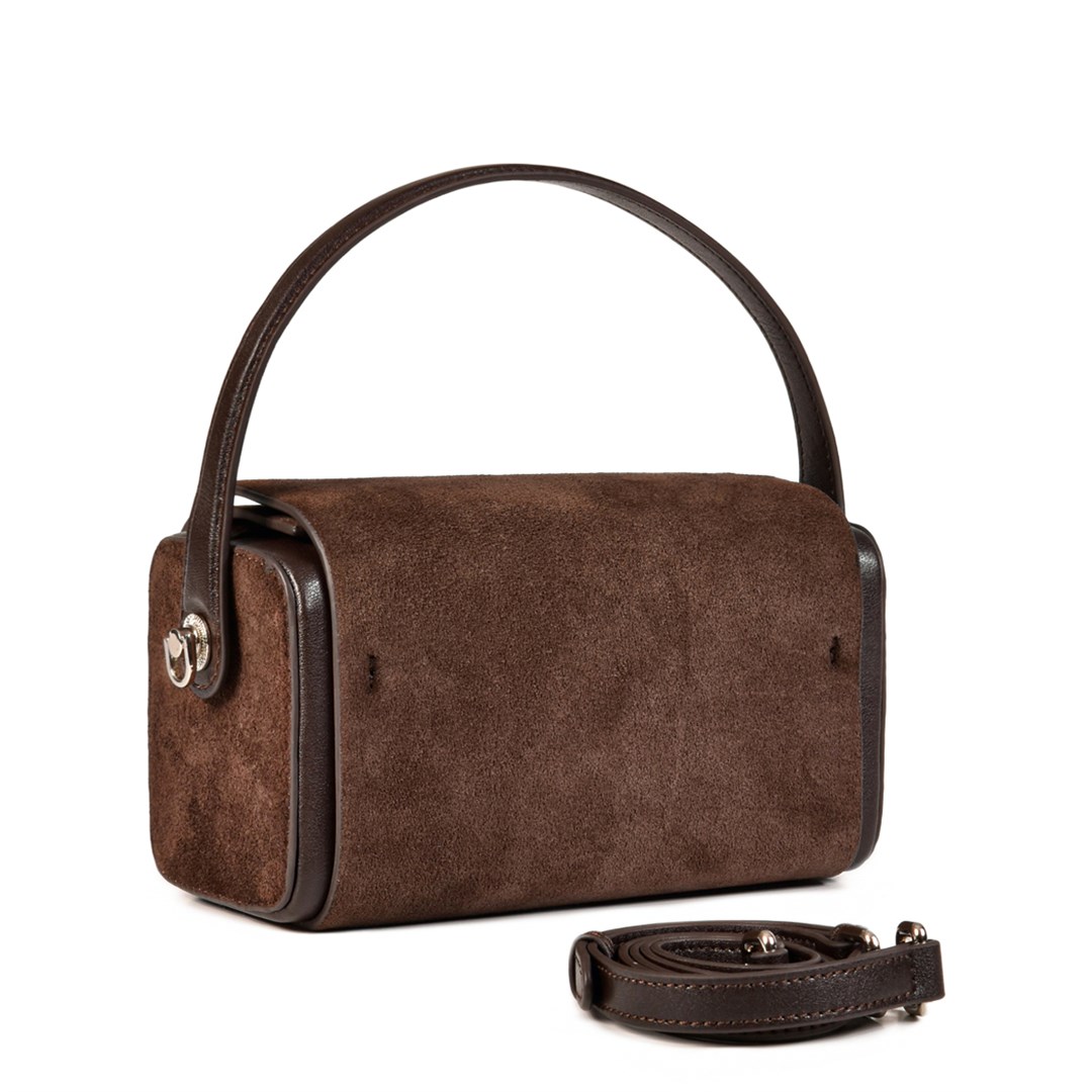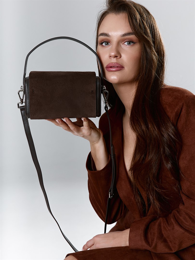 Сумка кросс-боди в насыщенном шоколадном оттенке — стильный акцент для современного гардероба. Лаконичная прямоугольная форма и мягкая фактура замши создают ощущение уюта и элегантности. Модель оснащена короткой ручкой и длинным регулируемым ремнем. Компактный, но вместительный формат идеально подходит для повседневных дел и прогулок по городу. Металлическая фурнитура и контрастные кожаные детали подчеркивают актуальность дизайна. Эта сумка гармонично дополнит как деловые, так и кэжуал-образы.