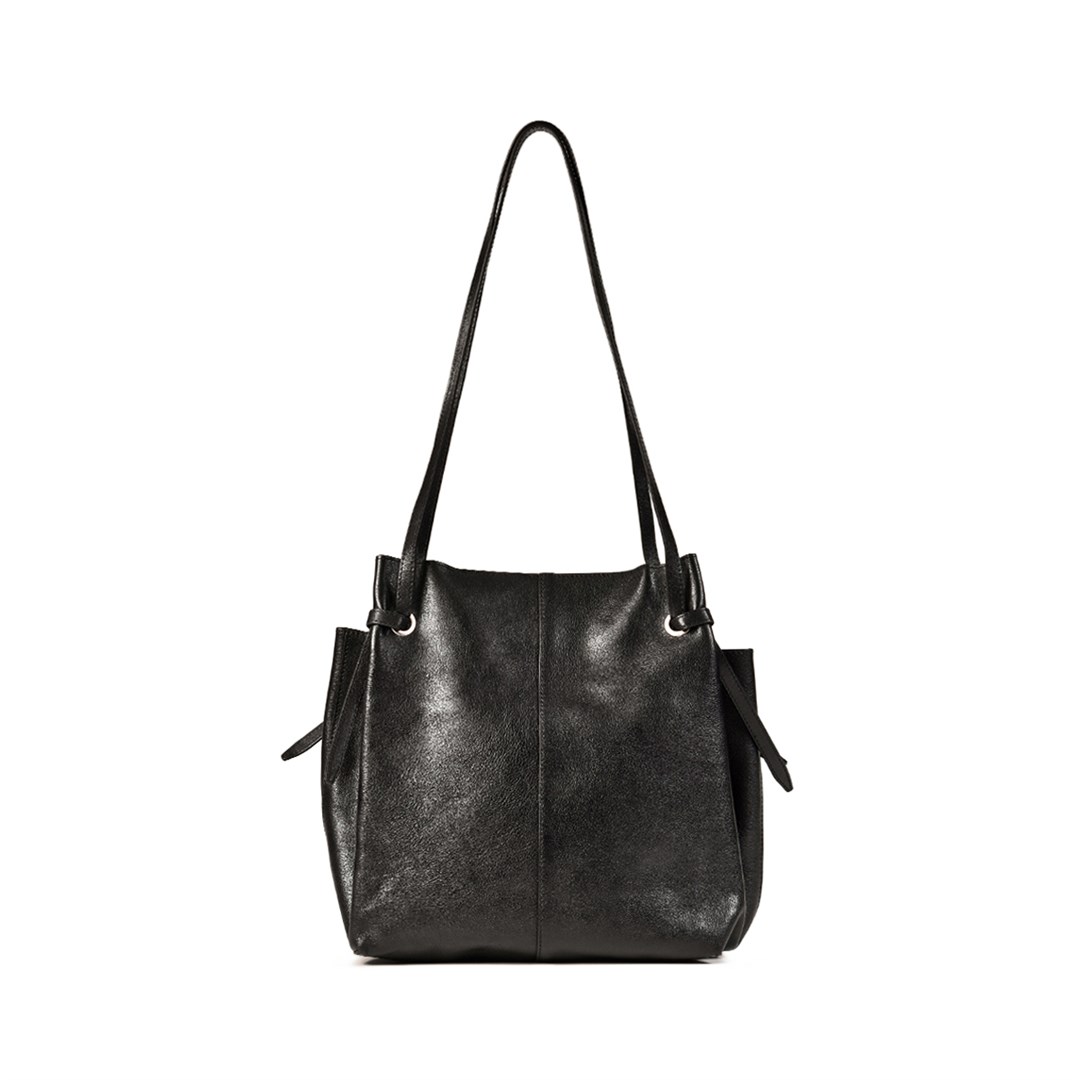 <p>Мягкая&nbsp;сумка‑шоппер&nbsp;в глубокому чёрном оттенке &mdash; расслабленный, но собранный вариант для города. Плавный силуэт с лёгкими драпировками и тонкие двойные ручки создают ощущение непринуждённости, а лаконичный дизайн делает модель универсальной для любого гардероба. Внутри &mdash; съёмный текстильный мешок на кулиске, который помогает поддерживать порядок и надежно скрывает содержимое. Чёрная кожа с мягким блеском гармонирует&nbsp;с пальто,&nbsp;оверсайз‑пуховиками и с базовым денимом.</p>